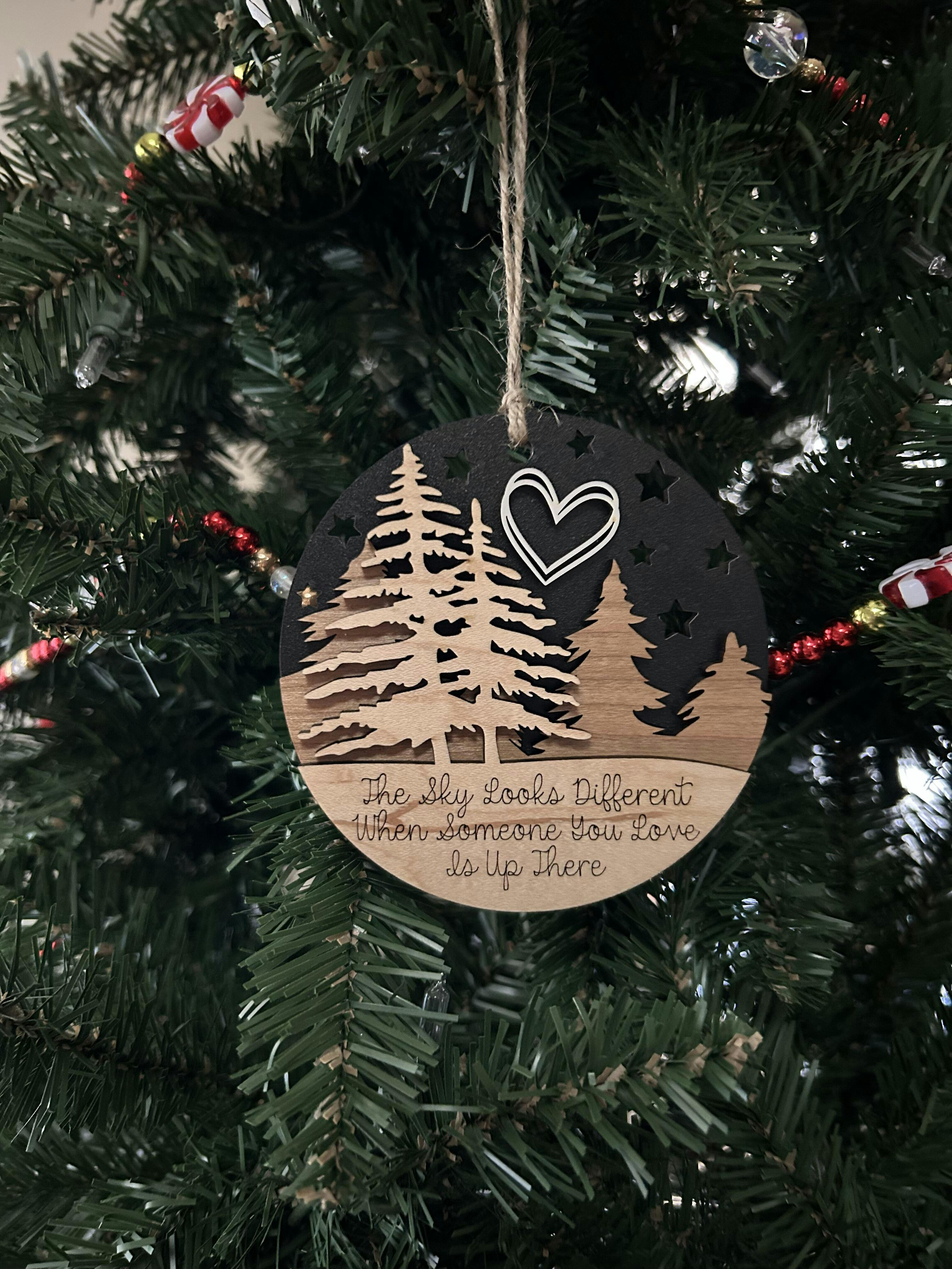 Cherish the memories of loved ones who have passed and remember them with this special ornament. This ornament is made up of three laser cut layers of wood and handcrafted with care.